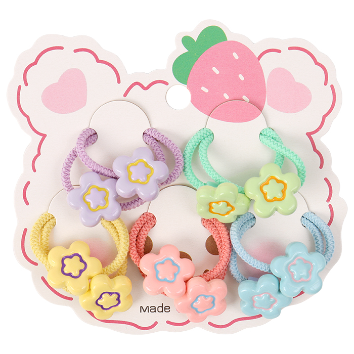 Использовать аксессуар для собирания волос и закрепления причёски. Комплектность : 10 резинок цветных с украшением "цветочек". Ассорти. Упаковка - п/э 13*11см.