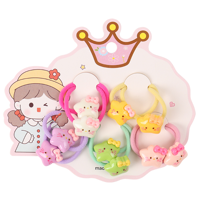 Использовать аксессуар для собирания волос и закрепления причёски. Комплектность : 10 резинок цветных с украшением "котик"Ассорти. Упаковка - п/э 13*11см.