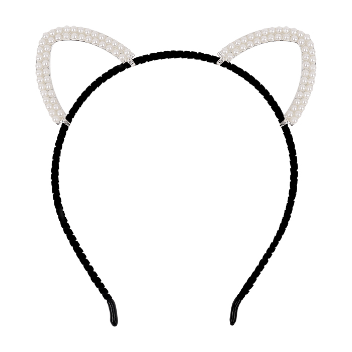 Ободок чёрный для волос с ушками жемчуг