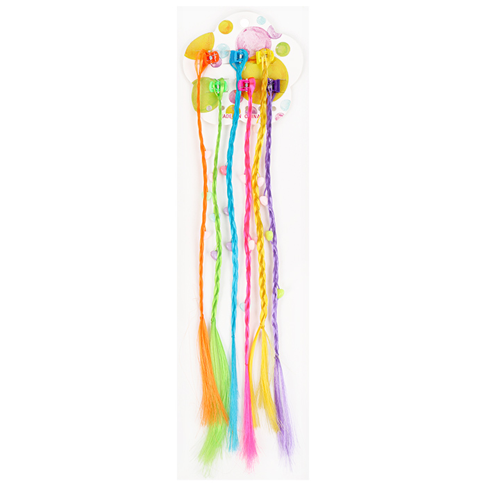 Яркие цветные пряди на заколке - тренд продаж этого сезона! Набор состоит из 6 крабиков с цветнами косичками.