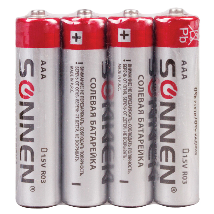 Батарейки Sonnen AAA(LR03) комплект 4шт солевые в спайке 1,5В