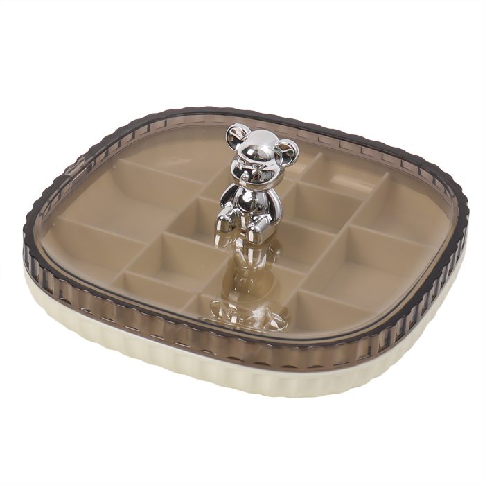 Мини-органайзер с прозрачной крышкой + мишка. Размер 14(15)*14*2,5см . Внутри, основание разделено на 16 отсеков , благодаря которым каждый предмет имеет собственное место. Предназначен для хранения различных принадлежностей. Упаковка картонная коробка 18,5*19*8,5см.