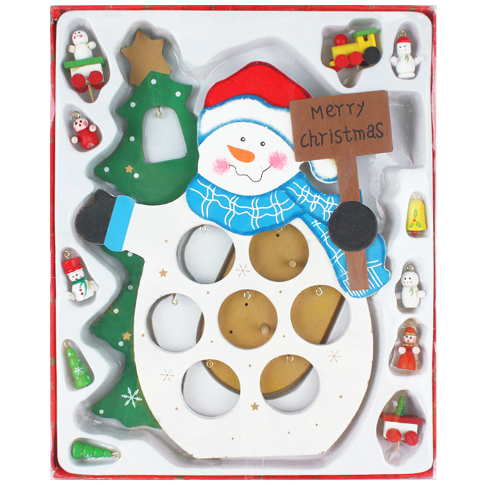 Снеговик деревянный на подставке с игрушками h-22,5см