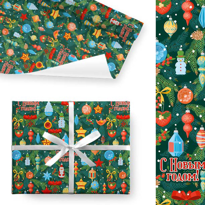Бумага глянцевая НГ Новогодние игрушки 70*100см (1лист/рул)