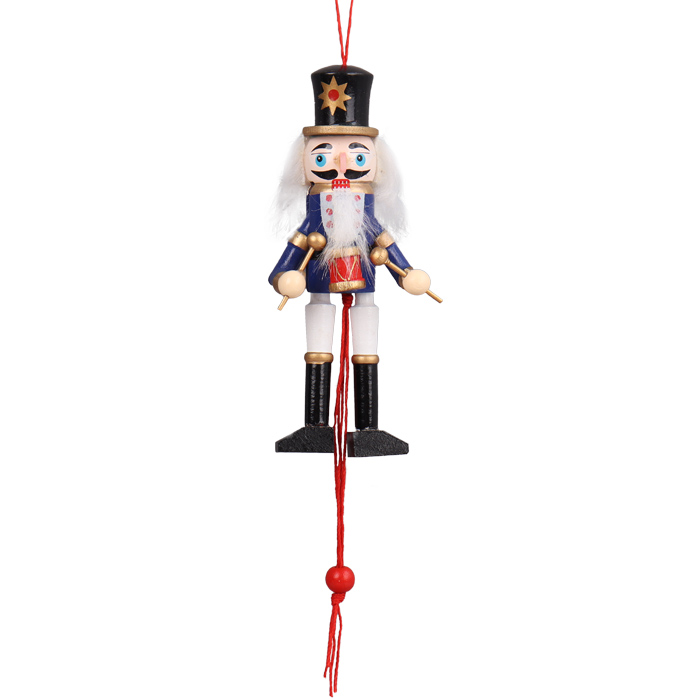 Подвеска "Щелкунчик" Н13см шарнирный. Потянув веревку вниз, подымаются ноги и руки (щелкунчик - акробат). Mix дизайн. Предназначена для украшения интерьера. Изготовлена из дерева, текстиля. Упаковка пакет 10*20*1см