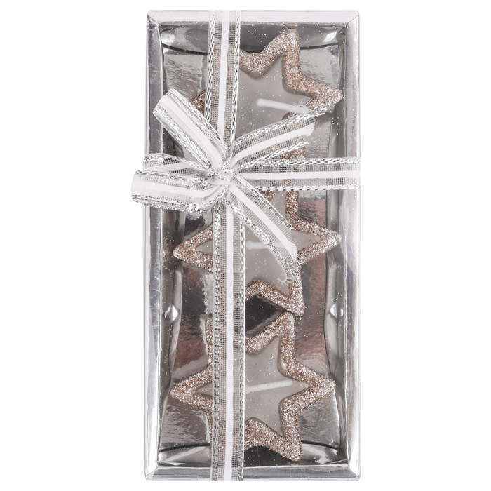 Свечи в наборе 3шт серебро Звездочки. Упаковка подарочная с бантиком 6,5*14*2см.