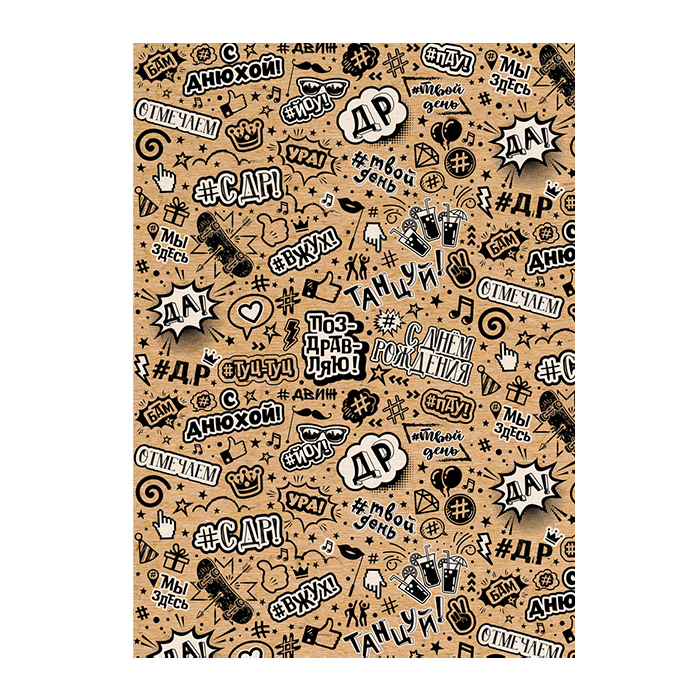 Бумага крафт С днем рождения 100х70см (1лист/рул)