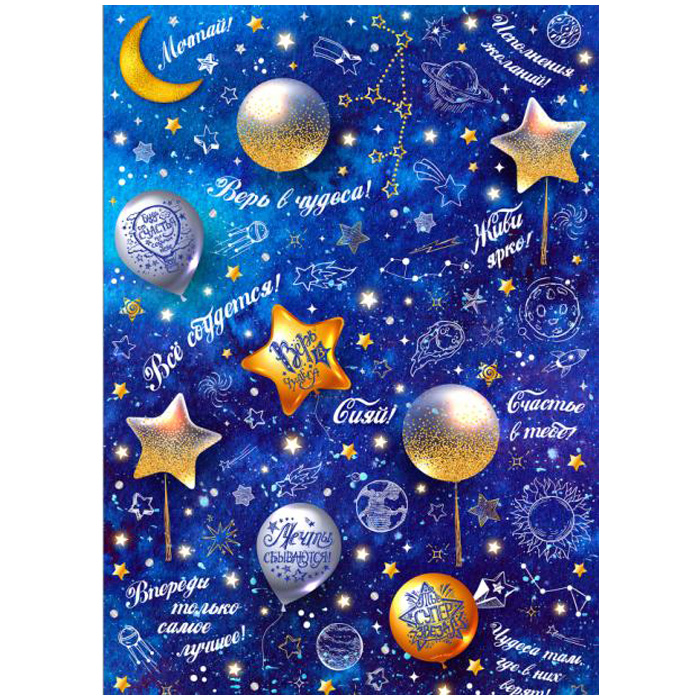Бумага глянцевая Звёздное небо 70*100см (5лист/рул)