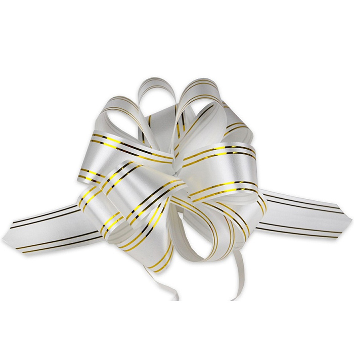 Бант-шар 5см Красивый узор , белый с золотой окантовкой (органза)