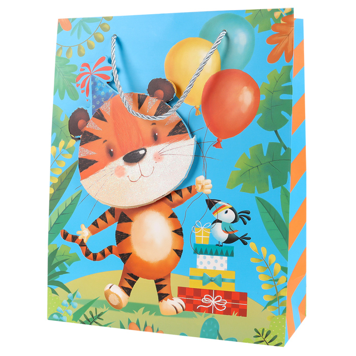 Пакет подарочный 26*32*10см "Зверята" 3D блёстки