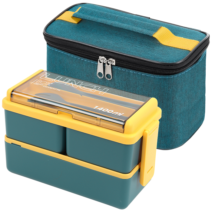 Предназначен для хранения и переноски пищевых продуктов. Номинальный объём : 1400мл. Комплектность: сумка, 3 контейнера, вилка, ложка. Подходит для мытья в посудомоечной машине. Упаковка: пакет 21*12,5*10см.