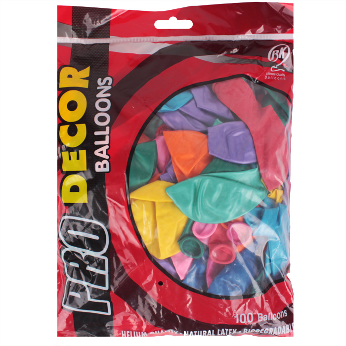 В упаковке 100 штук воздушных шаров различных цветов.