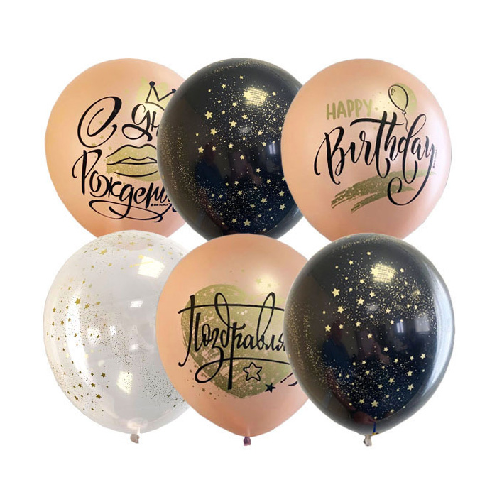 Шар воздушный 12" с рисунком "С Днем рождения! Rose gold!" 25шт/уп