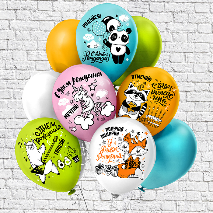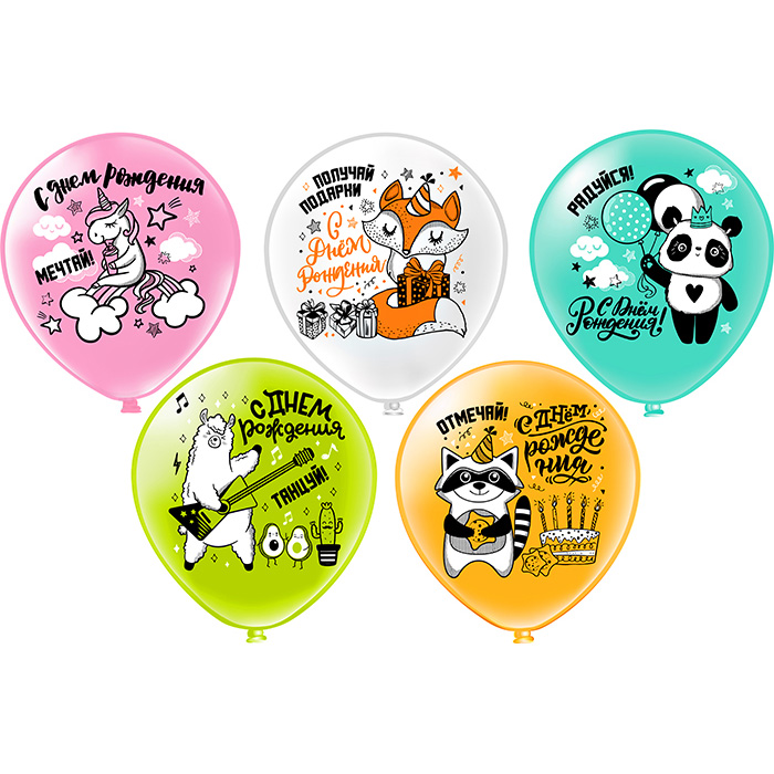 Шар воздушный 12" с рисунком "С ДР! Мечтай! Отмечай! Радуйся!" 25шт/уп