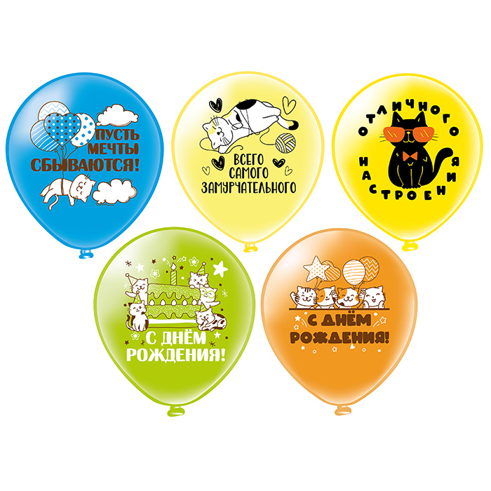 Шар воздушный 12" с рисунком "С ДР Замурчательный день!" 25шт/уп