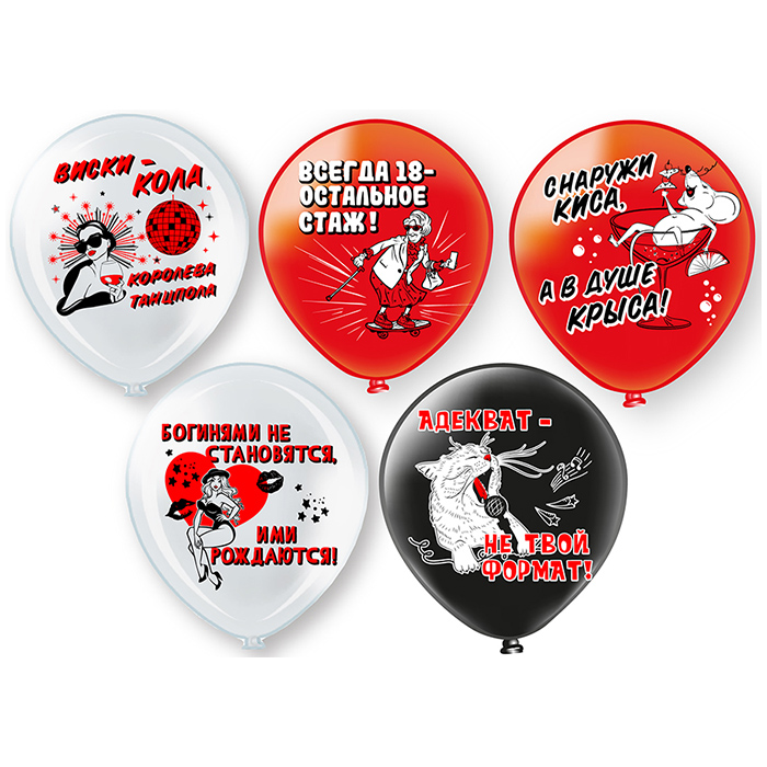 Диаметр шаров — 12 дюймов, что составляет примерно 30 сантиметров, идеальны для украшения помещений или улицы. Подходят для надувании как гелием, так и обычным воздухом, что делает их универсальными в использовании. Изготовлены из латекса — это гарантирует прочность и эластичность. 5 дизайнов