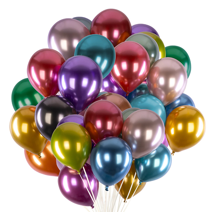 Высококачественные однотонные шары классической формы. Изготовлены из натурального латекса, обеспечивающего прочность изделия при аккуратном использовании. Стандартный размер - 30 см. 50 шаров ассорти разнообразных цветов с эффектом хром украсят любой интерьер.