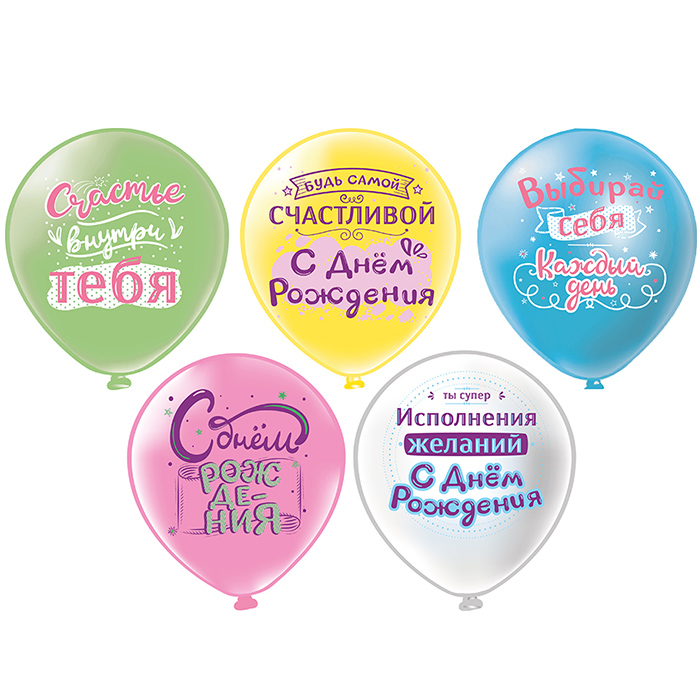 Диаметр шаров — 12 дюймов, что составляет примерно 30 сантиметров, идеальны для украшения помещений или улицы. Подходят для надувании как гелием, так и обычным воздухом, что делает их универсальными в использовании. Изготовлены из латекса — это гарантирует прочность и эластичность. 5 дизайнов.