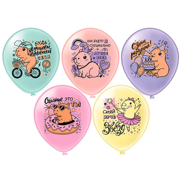 Шар воздушный 12" с рисунком "СДР! Капибара Лучше всех!" 25шт/уп