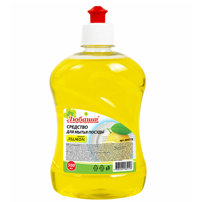 Средство для мытья посуды ЛЮБАША эффективно удаляет с посуды все загрязнения. Эффективно в холодной воде.