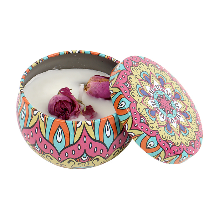 Свеча ароматизированная, жестяная банка круглой формы 6*5*6см. В ассортименте. Упаковка - коробка подарочная 6*4*6см.