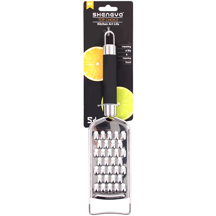 Тёрка поможет нарезать сыр, овощи и другие продукты. Отлично подойдет и для приготовления шоколадной стружки. Изготовлена из нержавеющей стали. Упаковка: картон. подложка с европодвесом + пакет.7*29*2см