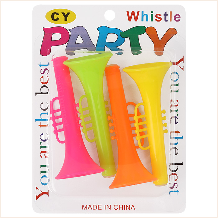 Праздничный набор "Дудки" . Набор состоит из 4 дудочек ассорти. Для подачи звукового сигнала. Поможет весело провести праздничные мероприятия. Изготовлен из полипропилена. Упаковка: блистер 10,5*14*3см.Европодвес.