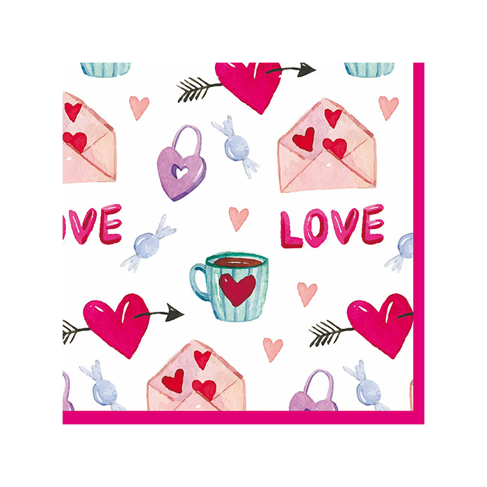 Салфетка бум. 2-х слойная "Сердечки" 33*33см (16шт.уп.)
