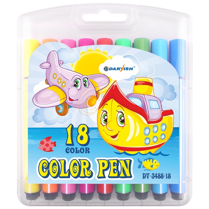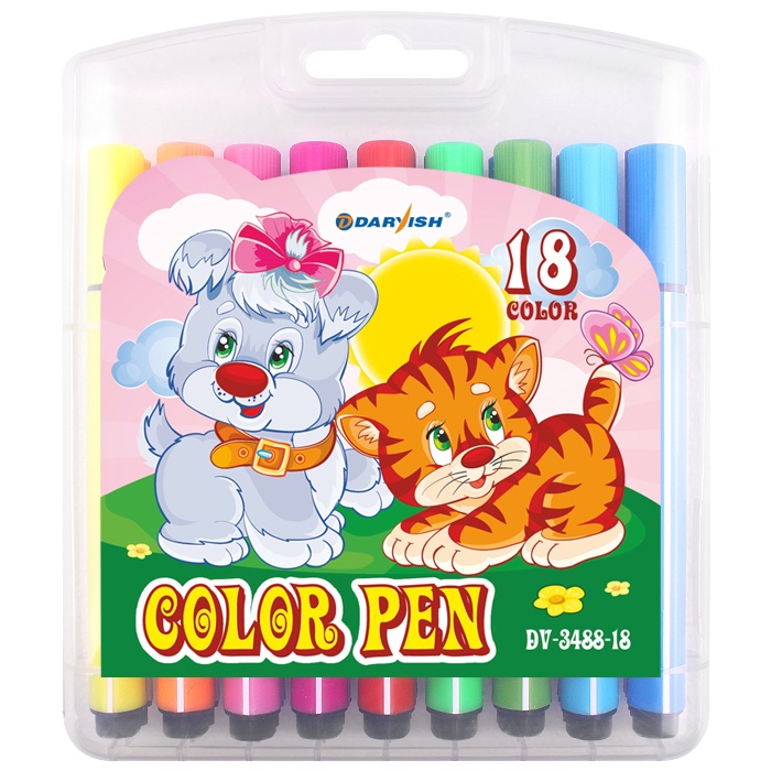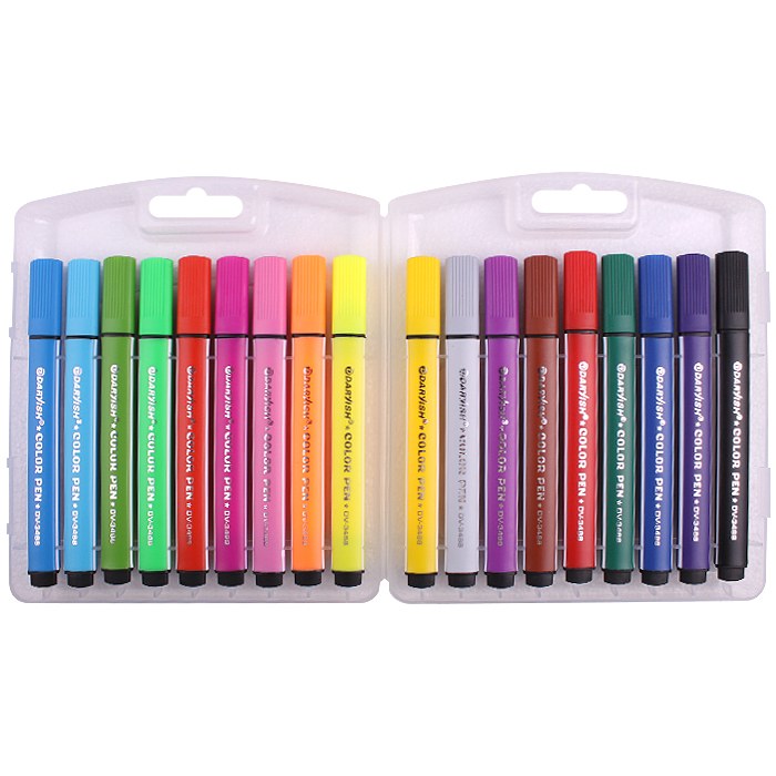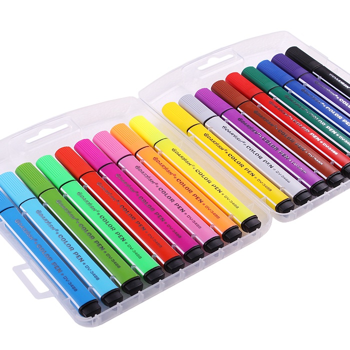 Фломастеры 18 цветов, в пластиковом пенале. Имеют яркие насыщенные цвета. У фломастера для рисования утолщенный корпус треугольной формы, который снижает усталость кисти ребенка в процессе рисования, его легко держать в небольшой детской руке. Фломастеры изготовлены на водной основе, поэтому они безопасны, не токсичны, практически не имеют запаха и легко смываются с большинства материалов и кожи. Подойдет для детей, школьников начальных и средних классов.