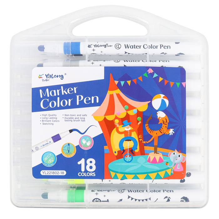 Предназначены для рисования на бумаге и картоне. Количество цветов-18. Круглый корпус. В пластиковом пенале с европодвесом.