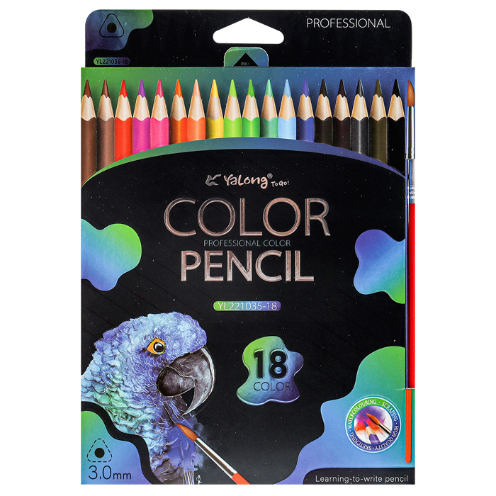 Предназначены для рисования на бумаге и картоне. Акварельные карандаши-это цветные карандаши , у которых грифель состоит из плотно спрессованной сухой акварели. Ими можно рисовать не только по сухому листу , но и по влажной бумаге с пременением кисти. Размывая рисунок водой, получается эффект акварельной краски. Количество цветов : 18(кисточка в комплекте). Трёхгранный корпус из древесины.