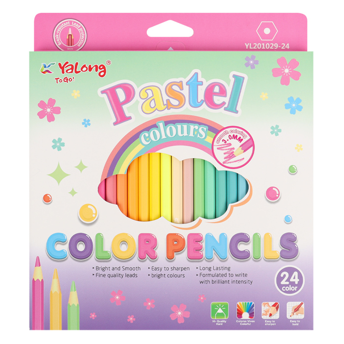 Предназначены для рисования на бумаге и картоне. Количество цветов : 24. Шестигранный корпус из древесины.