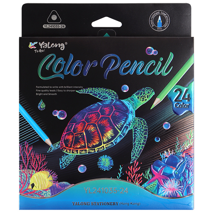 Предназначены для рисования на бумаге и картоне. Количество цветов : 24. Трёхгранный корпус из древесины. Упаковка: кар. кор. с европодвесом.19*22,5*1см