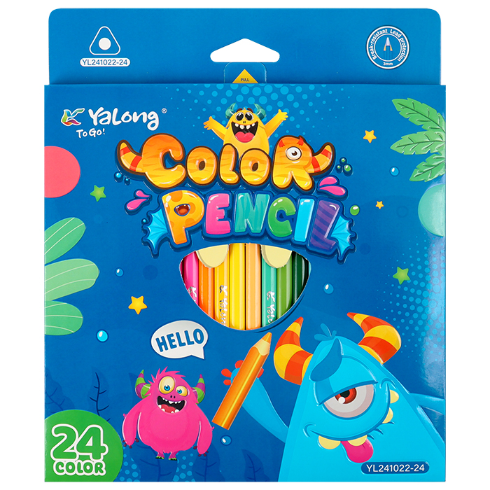 Предназначены для рисования на бумаге и картоне. Количество цветов : 24. Трёхгранный корпус из древесины. Упаковка: кар. кор с европодвесом.19*22,8*1см
