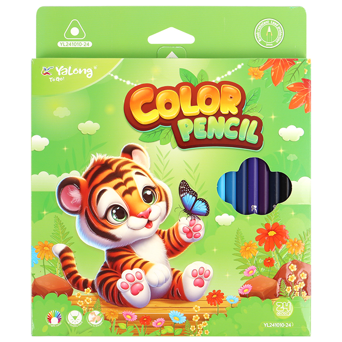 Предназначены для рисования на бумаге и картоне. Количество цветов : 24. Трёхгранный корпус из древесины. Упаковка: кар. кор. с европодвесом.19*23*1см