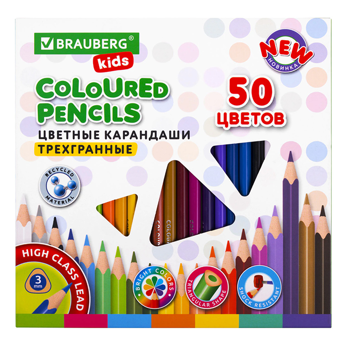 Пластиковые трехгранные цветные карандаши высокого качества BRAUBERG KIDS NEW незаменимы для обучения рисованию и развития творческих способностей ребенка. Особое качество красящего пигмента обеспечивает насыщенные, яркие цвета.
