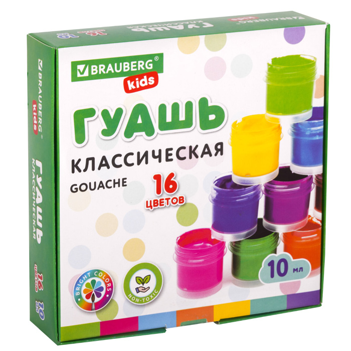 Гуашь 16цв. "Brauberg kids" по 10мл