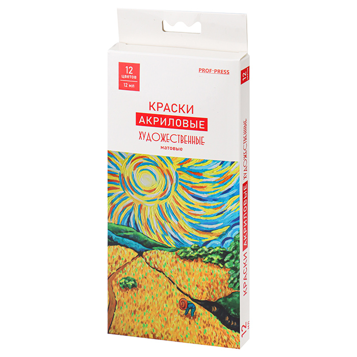 Краски акриловые художественные матовые набор 12 цветов, 12 мл, в алюм.тубе