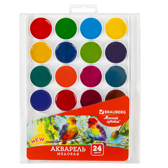 Краски аквар. 24цв. "Brauberg" "Магия цвета" медовые б/к