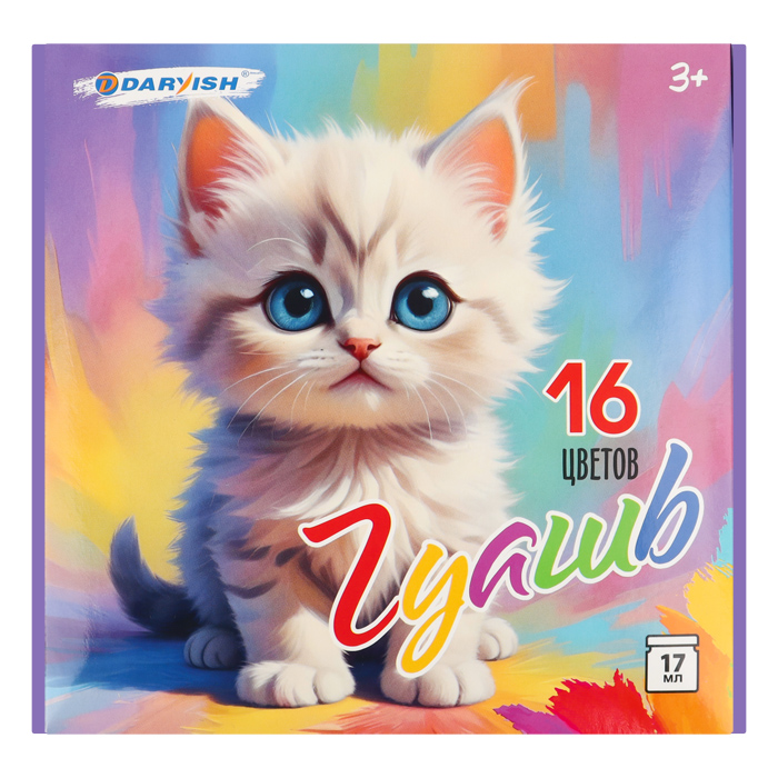 Гуашь 16цв. "Котёнок" 17мл картонная упаковка