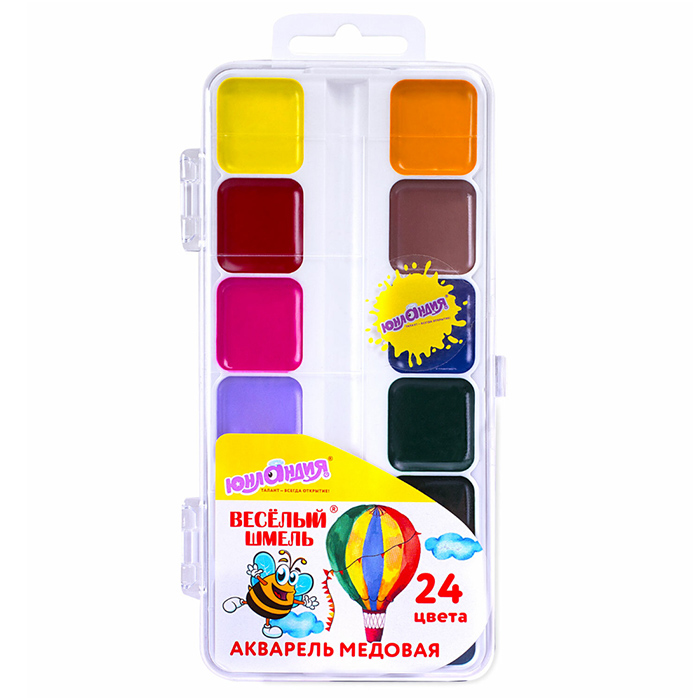 Краски аквар. 24цв. "Юнландия" "Весёлый шмель" медовые б/к