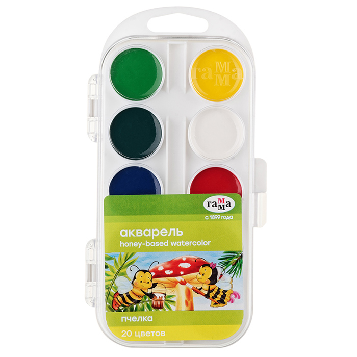 Краски аквар. 20цв. "Пчёлка""Гамма" медовые без кисти