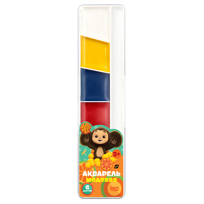 Краски аквар. 6цв. "Чебурашка""Мульти-Пульти" медовые без кисти