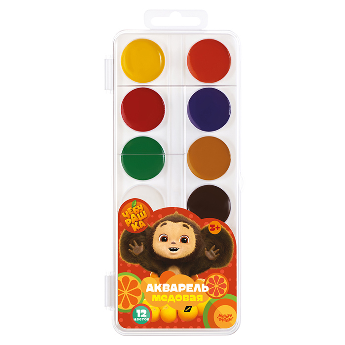 Краски аквар. 12цв. "Чебурашка""Мульти-Пульти" медовые без кисти