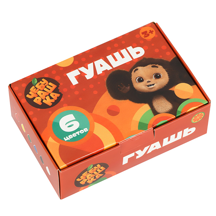 Школьная гуашь «Мульти-Пульти» серии «Чебурашка» создана специально для детского творчества и декоративно-оформительских работ. Упаковка с дизайном любимого героя – Чебурашки – делает набор необычным и ярким. В наборе имеются 6 баночек разных цветов (жёлтый, красный, зелёный, синий, чёрный, белый). Объём каждой баночки с завинчивающейся крышкой - 17,5 мл, общий объём - 105 мл. Отлично подойдет как для личного использования, так и для подарка. Краски подходят для рисования по бумаге, картону, дереву, стеклу, керамике. Для детей старше 3-х лет.