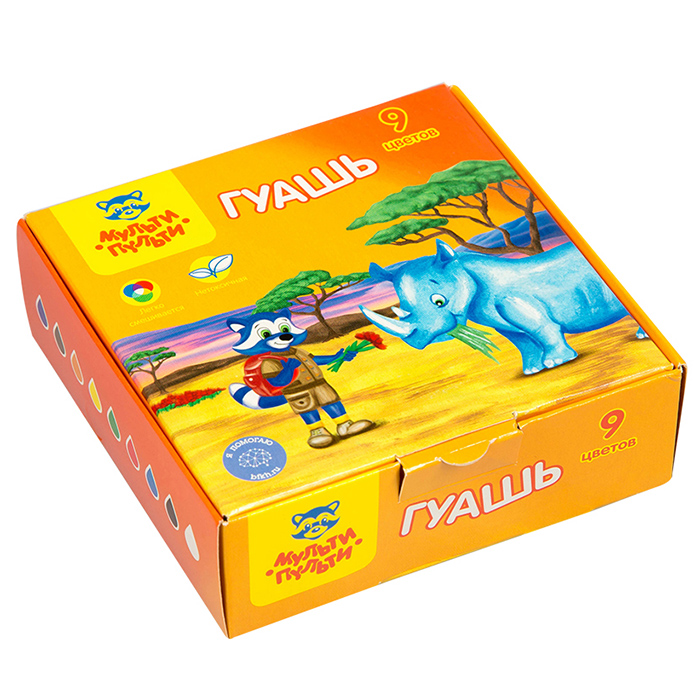 Гуашь 9цв. Мульти-Пульти "Енот в Африке" 20мл картонная упаковка