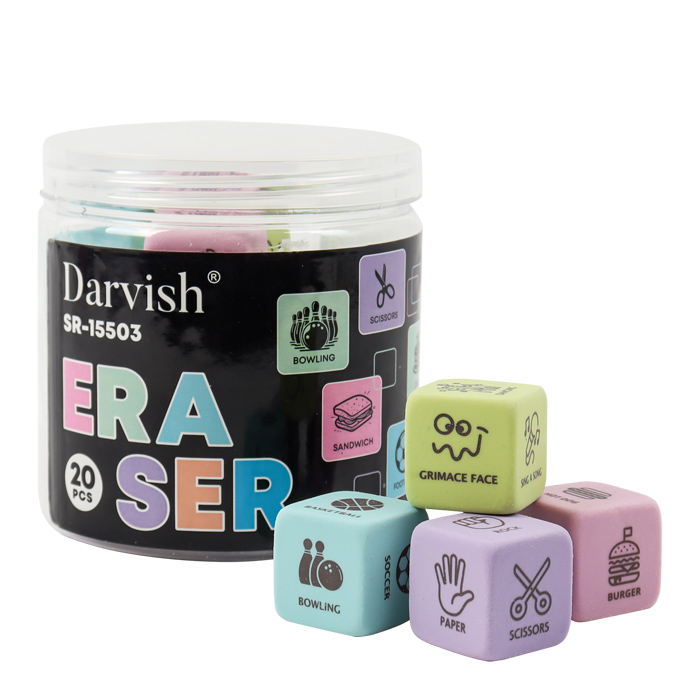 Ластик в форме кубика цвет ассорти. Размер: 2,5*2,5*2,5см. Обеспечивает лёгкое и чистое стирание без повреждения поверхности бумаги. Изготовлены из термопластичной резины. Упаковка 20шт- пласт. банка .