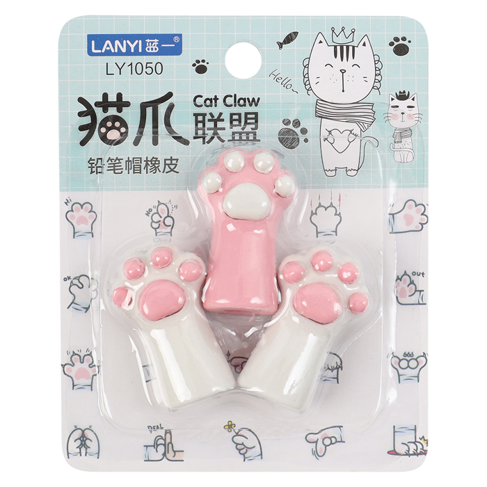 В наборе 3 фигурных ластика. Ластик в форме лапки. Упаковка: блистер с европодвесом.8,5*1,5*10,5см