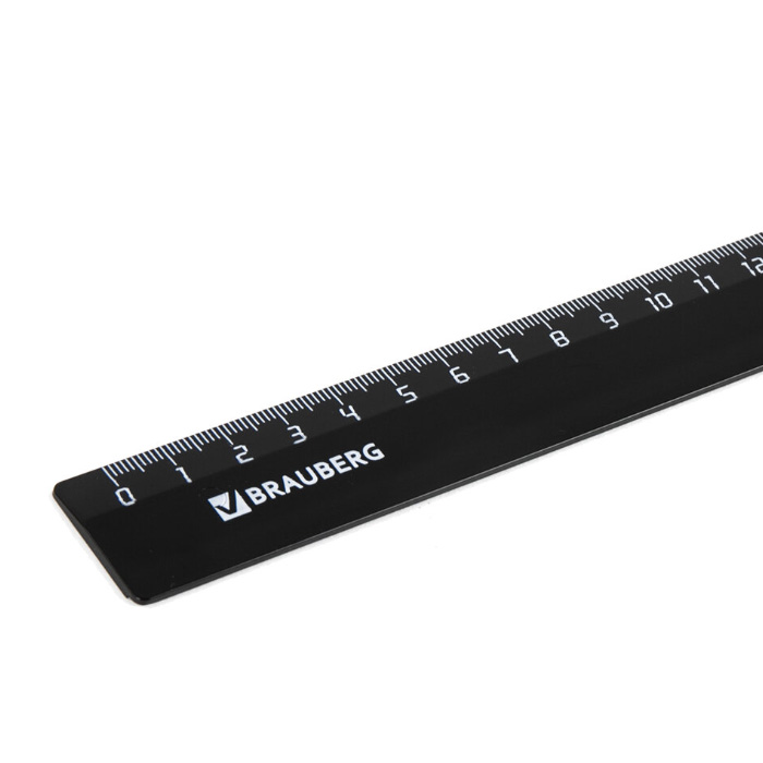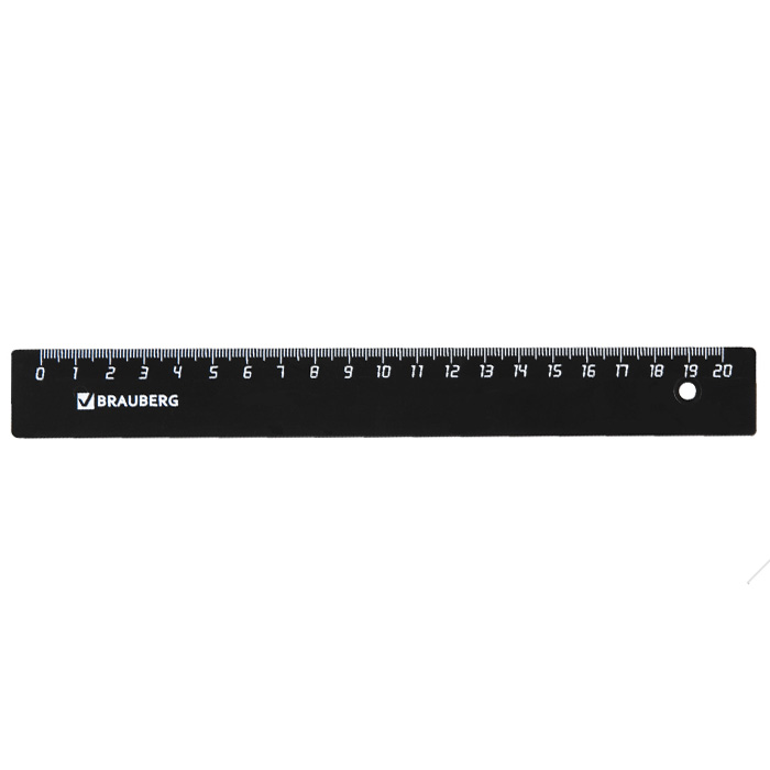 Линейка из прочного черного пластика. Имеет безопасные закруглённые углы и четкую контрастную миллиметровую шкалу. Длина шкалы составляет 20 см.