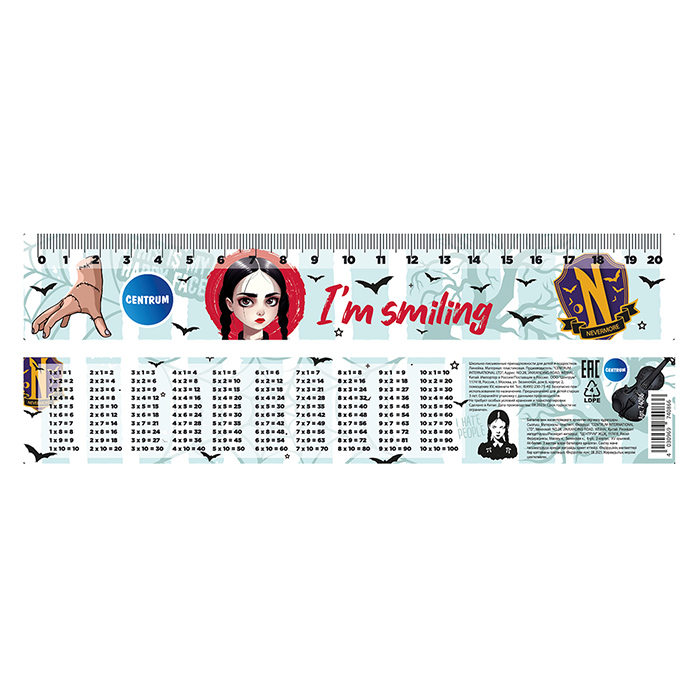 Линейка 20см пластиковая "Wednesday" с таблицей умножения